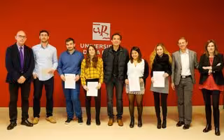 El Premio al Mejor Plan de Negocio ha sido entregado por Javier García Turza, secretario general de la Universidad de La Rioja; Santiago Vivanco Sáenz, vicepresidente de la Asociación Riojana de Empresas Familiares (AREF); y Juan Carlos Ayala Calvo, director de la Cátedra Extraordinaria de la Empresa Familiar en la Universidad de La Rioja.