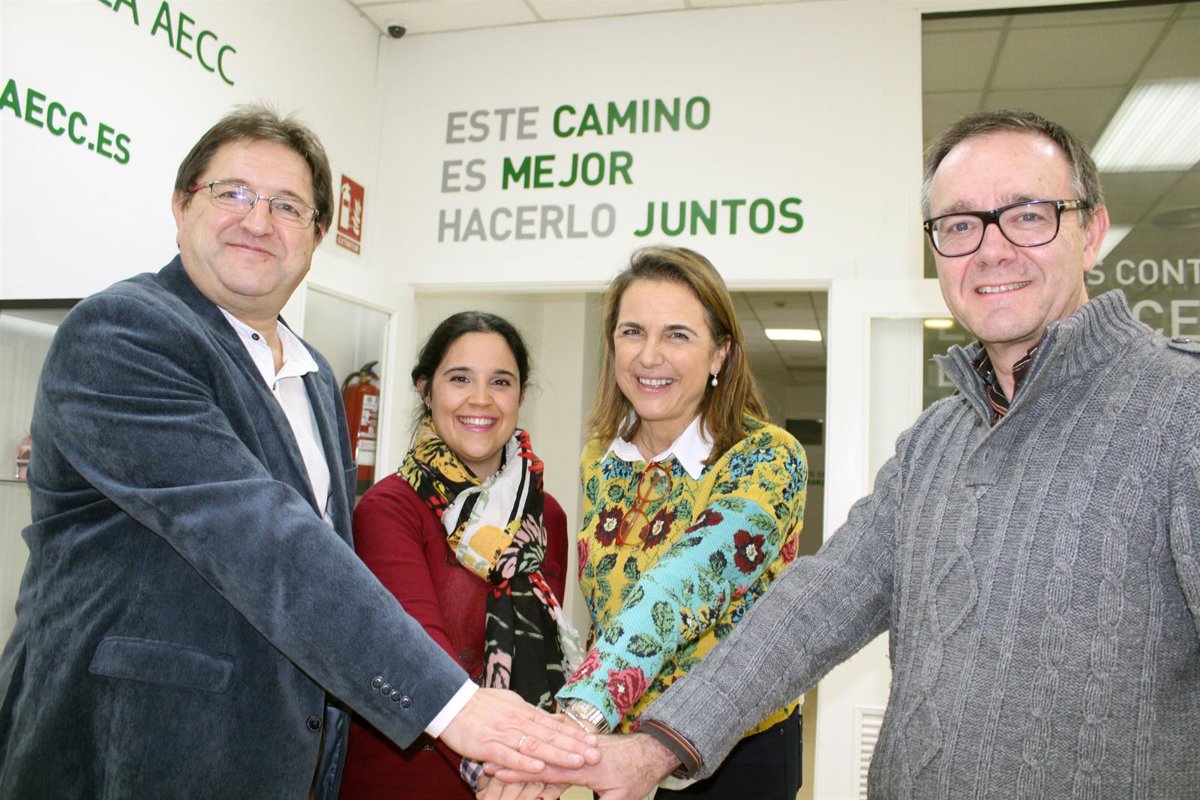 José Manuel García Pichel, investigador principal de la Unidad de Cáncer de Pulmón y Enfermedades Respiratorias del CIBIR; Elvira Alfaro, investigadora predoctoral, Elena Eguizábal, presidenta de la AECC en La Rioja, y Alfredo Martínez, investigador - GOBIERNO DE LA RIOJA
