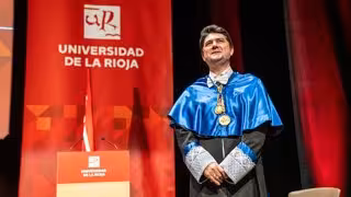 El científico Javier García en el momento de recibir el Honoris Causa por la UR - UR