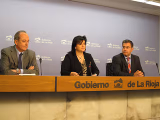 La consejera de Administración Pública y Hacienda, Concepción Arruga, junto con el director de la Fundación Caja Rioja, Arturo Colina, y el director de Relaciones Institucionales de Bankia de La Rioja, Jorge Albájar, han anunciado esta mañana una nueva estrategia de dinamización digital dirigida a colectivos de exclusión digital, que conlleva el cierre de cinco 'cibertecas' en Logroño y una en Calahorra, entre otras cuestiones.