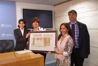 De esta manera, acompañada por el presidente del Consejo Territorial de la ONCE, Javier Muñoz, y la nueva delegada territorial de la ONCE, Estefanía Mirpuri, Aránzazu Vallejo ha recordado que el cupón "comenzará a venderse este próximo martes y dicha edición conmemorativa hará una labor muy importante para dar a conocer este proyecto riojano".
