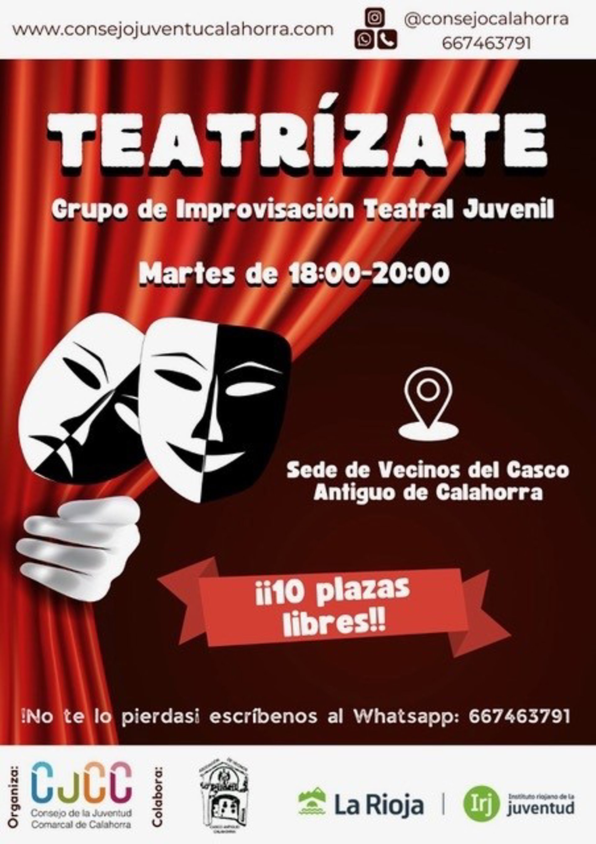 El Consejo de la Juventud Comarcal de Calahorra presenta "Teatrízate", una nueva iniciativa gratuita destinada a fomentar la creatividad, la libre expresión y el trabajo en equipo entre la juventud, a través de la improvisación teatral.
