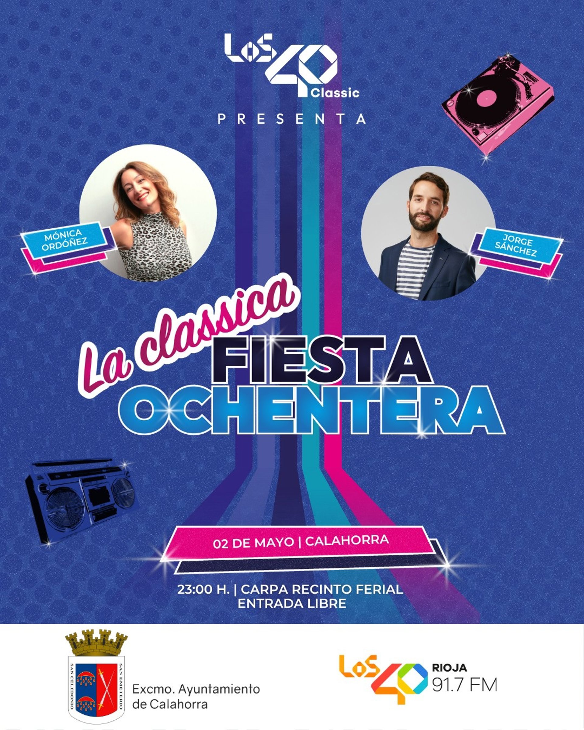 El Ayuntamiento de Calahorra junto con Los40 Rioja ha organizado, un año más, 'La Classica Fiesta Ochentera'. Una noche inolvidable que ofrecerá cuatro horas de música ininterrumpidas, con entrada libre para todos los asistentes.