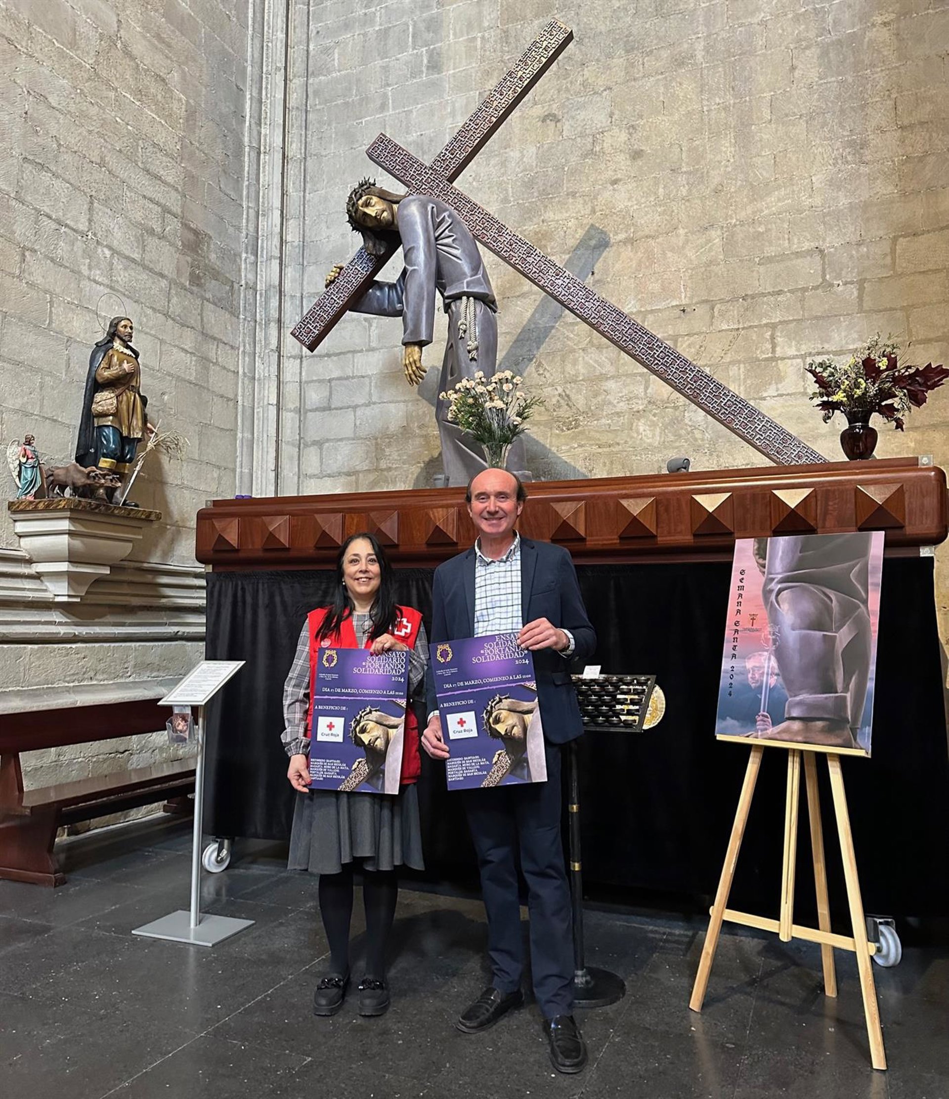 Antonio García Castroviejo, Hermano Mayor de la Cofradía de Jesús Nazareno y Nuestra Señora de los Dolores de Logroño yMaría Eugenia González Gómez, vicepresidenta de la Asamblea Autonómica de Cruz Roja en La Rioja, en comparecencia de prensa - CRUZ ROJA LA RIOJA