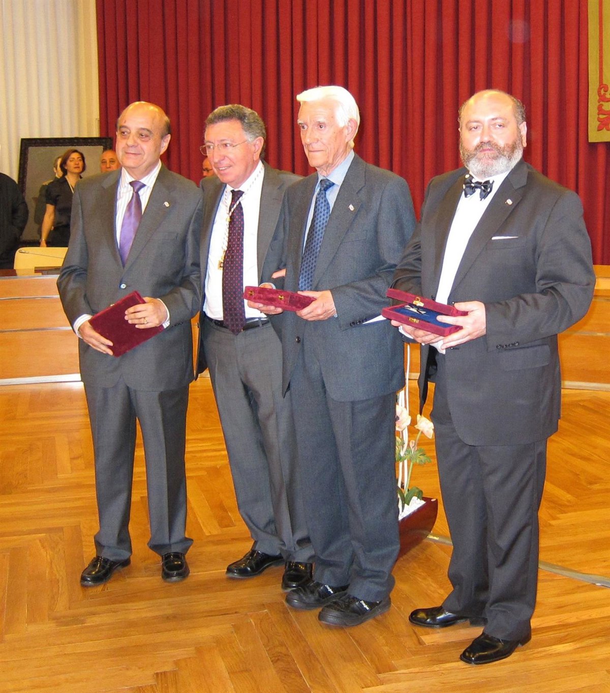 Archivo - El arquitecto Gerardo Cuadra ,insignia de San Bernabé 2011 junto al presidente de la 'Cla Pepe Eizaga', José Antonio Toyas, y al pintor y presidente de la cofradía de San Bernabé, Elías del Rí - EUROPA PRESS - Archivo