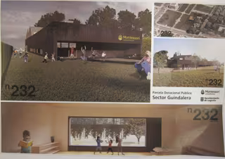 La parcela en la que se construirá Montessori School House Logroño tiene forma trapezoidal, está ubicada en el sector La Guindalera, lindando al este con la urbanización "Piedralgallo", al sur con un solar aún sin desarrollar, al norte con la calle Los Guindos y al oeste con un parque público.