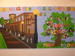Según el comunicado del Ejecutivo, en la exposición puede verse el mural ganador que representa "una oscura estación de ferrocarril con personas que tienen problemas sociales". El tren "les lleva a solucionarlos gracias a los voluntarios". La obra se titula en 'Cojamos el tren de la solidaridad. Hay sitio para todos' y ha sido galardonada con un viaje a 'Port Aventura' y una camiseta para cada alumno.