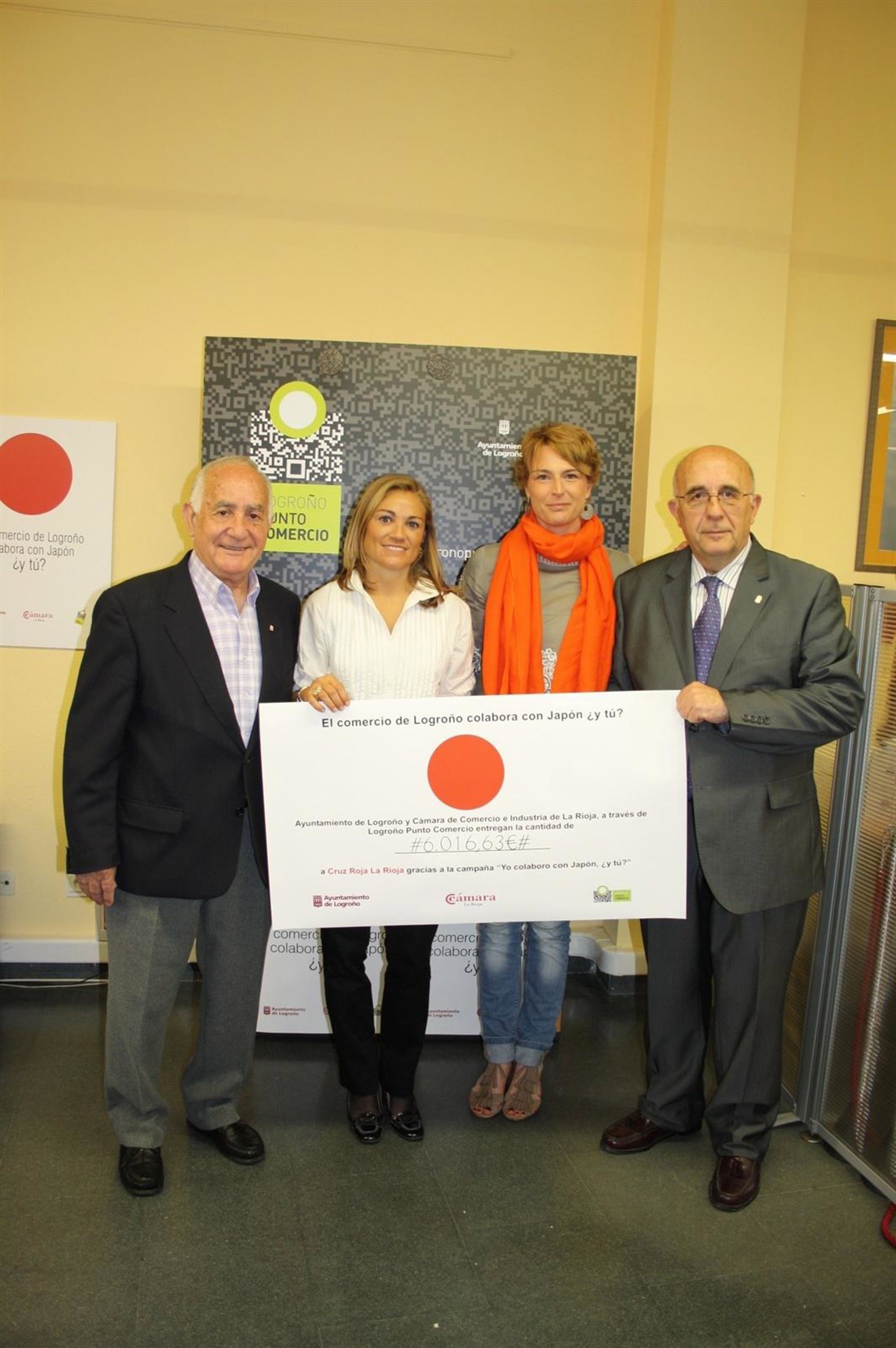 La Cámara de Comercio e Industria de La Rioja y el Ayuntamiento de Logroño, a través de Logroño Punto Comercio, han entregado esta mañana a los responsables de Cruz Roja de La Rioja el dinero recaudado por el comercio de Logroño en una iniciativa solidaria que se ha desarrollado en la capital riojana durante el pasado mes de abril con la que se pretendía recaudar fondos para ayudar a las víctimas del terrible desastre ocurrido en Japón como consecuencia del terremoto.