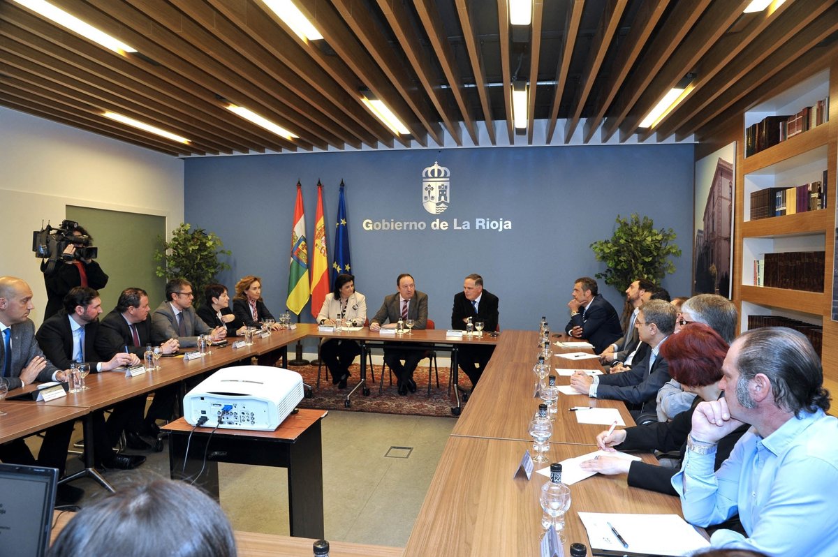 El presidente riojano, Pedro Sanz, ha mantenido un encuentro, acompañado por la consejera de Hacienda, Concepción Arruga, con los agentes económicos y sociales en los que les ha presentado el 'Diagnóstico Territorial Estratégico' de La Rioja, que servirá de punto de partida para elaborar el FEDER 2014-2020, para pedirles sus aportaciones.