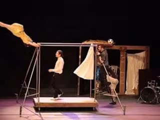 Un balón de fútbol, una comba, unas sábanas blancas o las entrañas del armario son algunos de los elementos que los cuatro acróbatas y un músico "al que también le hemos conseguido enseñar alguna acrobacia" juegan a lo largo de la obra "de la que no se puede desvelar más, hay que verla".