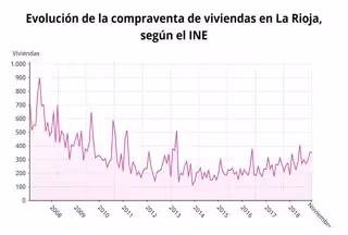 La compraventa de viviendas en La Rioja ha subido 28,8 por ciento el pasado mes de noviembre en relación al mismo mes de 2017, el segundo mayor incremento de todas las comunidades, hasta sumar 353 operaciones, según ha informado este viernes el Instituto Nacional de Estadística (INE).