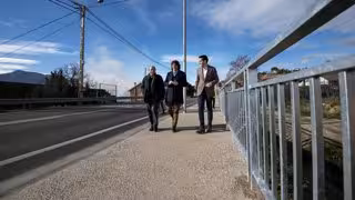 Acto seguido, Rubio y el alcalde de Arnedo, Javier García, han visitado el final de obra del nuevo tramo de acera junto a la carretera LR-115, proyecto desarrollado con el objetivo de separar el tráfico rodado del peatonal.
