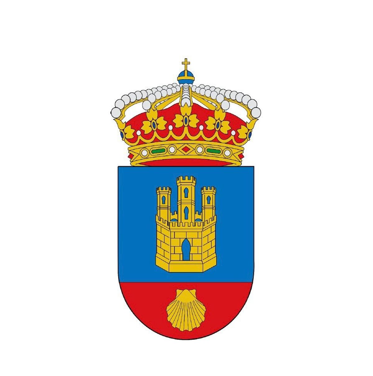 Por su parte, la bandera municipal se describe como un "paño rectangular, de color azul, con un castillo amarillo aclarado de azul. Terciada al asta de rojo con tres veneras amarillas colocadas verticalmente".