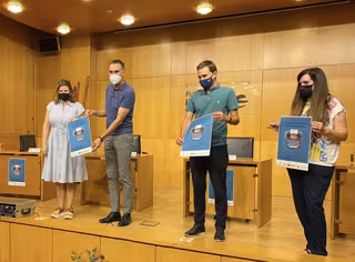 El alcalde de Nalda e Islallana, Daniel Osés, acompañado del director de la Centro Cultural Ibercaja, Millán Lozano; la gerente del CEIP Rural, Marta García y de la directora de Editorial Siníndice, Judit Arteaga, ha presentado este miércoles la nueva edición del Premio Literatura Ilustrada Villa de Nalda e Islallana.