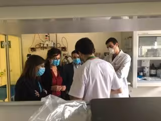En la visita han participado la doctora Lydia Álvarez, investigadora principal del Grupo de Neurobiología Molecular; María de Toro, investigadora principal de la Unidad Plataforma de Genómica y Bioinformática; Ignacio Larráyoz, investigador principal de la Unidad de Biomarcadores y Señalización Molecular; Álvaro Pérez Sola, ingeniero biomédico de la Unidad de Biomarcadores y Señalización Molecular; Beatriz Rojo, investigadora del Grupo de Microbiología Molecular; Yolanda Saénz, Investigadora Principal del Área de Microbiología Molecular; y Elena Domínguez, investigadora principal de la Plataforma de la Investigación Biomédica.