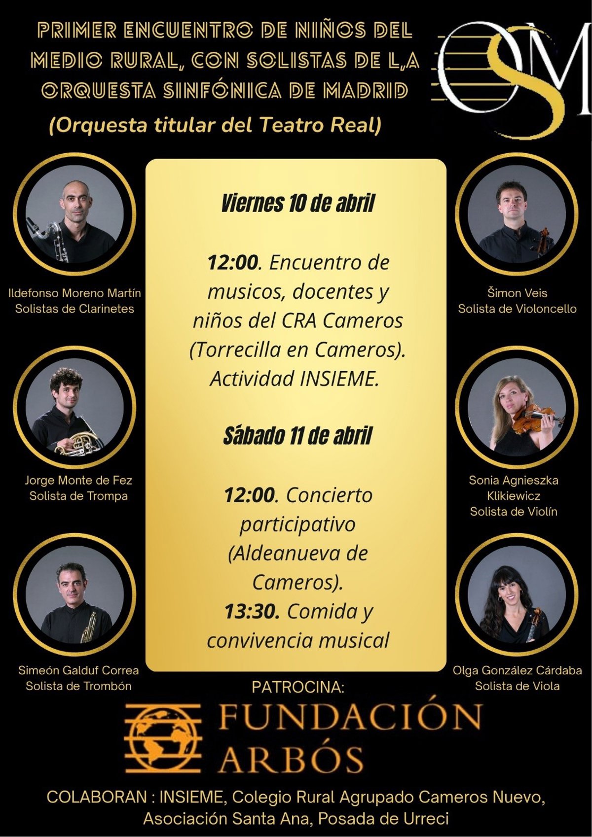 Del 9 al 12 de abril, Sime Galduf, profesor de la OSM junto con compañeros de la Orquesta Sinfónica de Madrid, realizará una actividad conjunta (INSIEME) con el CRA de Cameros Nuevo.