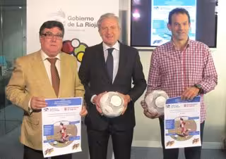 El consejero de Presidencia y Justicia, Emilio del Río, acompañado por el concejal del Ayuntamiento de Logroño, Augusto Ibáñez, y presidente de la Federación Riojana de Fútbol, Jacinto Alonso, ha presentado esta mañana la I Escuela Femenina de Fútbol organizada por la Federación Riojana de Fútbol con la colaboración del Gobierno de La Rioja y el Ayuntamiento de Logroño y que dará comienzo el próximo domingo, 2 de noviembre. Pretenden potenciar la práctica de este deporte por parte de las mujeres.