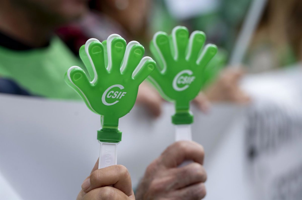 Archivo - Aplaudidores en forma de mano con el logo del CSIF - Alberto Ortega - Europa Press - Archivo