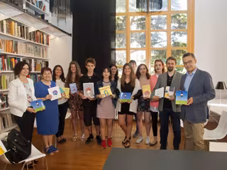 A la presentación ha asistido también la presidenta de la Asociación Pro-Infancia Riojana (APIR), Celia Sanz, el profesor de la ESDIR José María Lema, y los alumnos que han participado en esta iniciativa.