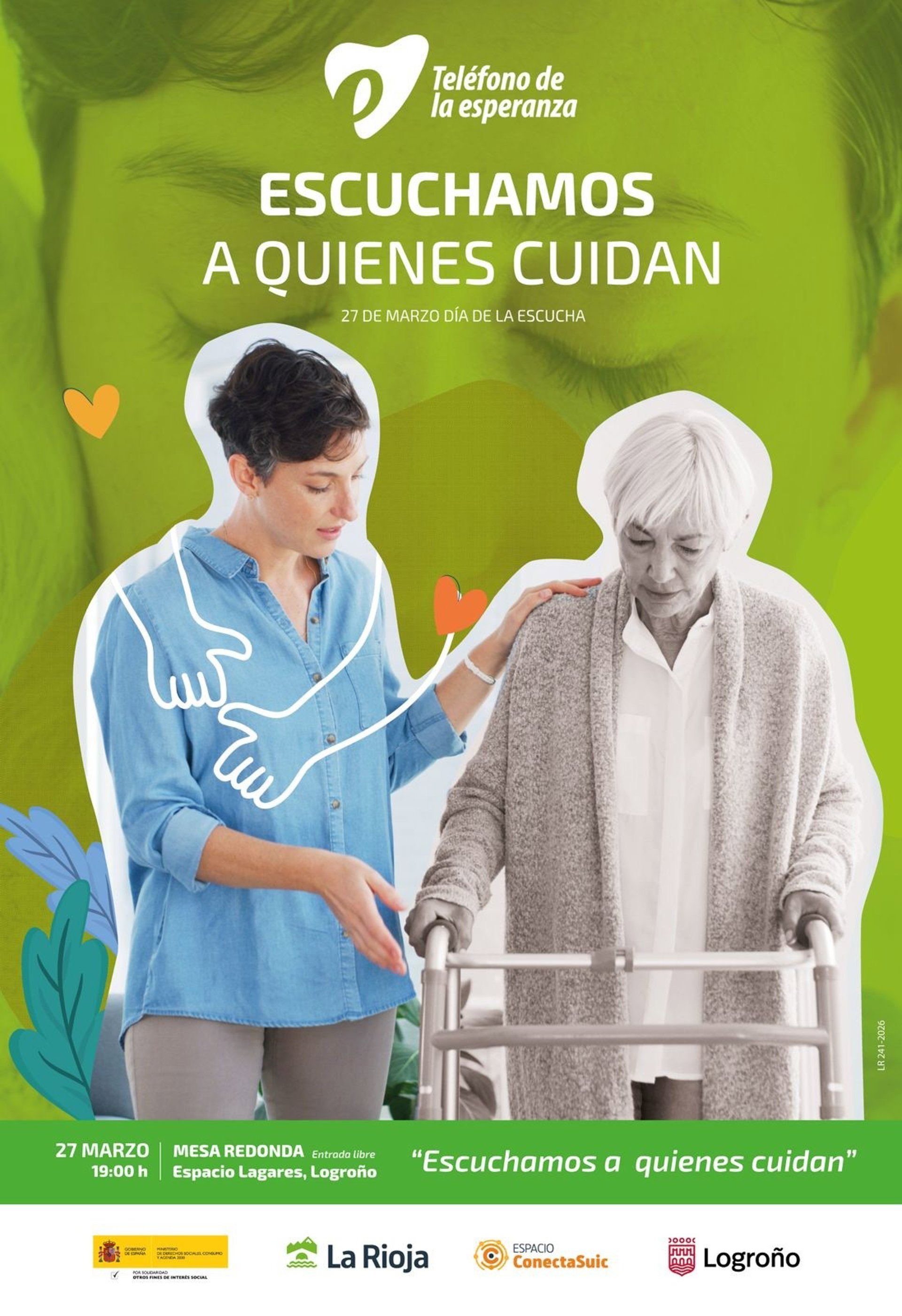 Bajo el lema 'Escuchamos a quienes cuidan', el Teléfono de la Esperanza impulsa su campaña del Día de la Escucha, el 27 de marzo, con una mesa redonda a las 19 horas en el espacio Lagares de Logroño, con el fin de recordar la importancia de cuidar la salud emocional en las personas cuidadoras.