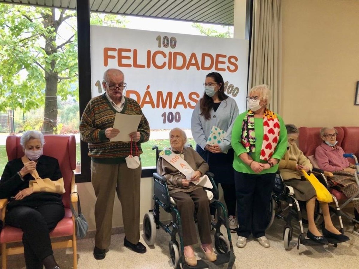 La alcaldesa de Calahorra, Elisa Garrido, acompañada por Carmen Vea, concejal de Personas Mayores han visitado a los residentes de San Lázaro entre los que se encuentra Damasa Fernández que cumplió el día 5 de noviembre 100 años de vida.