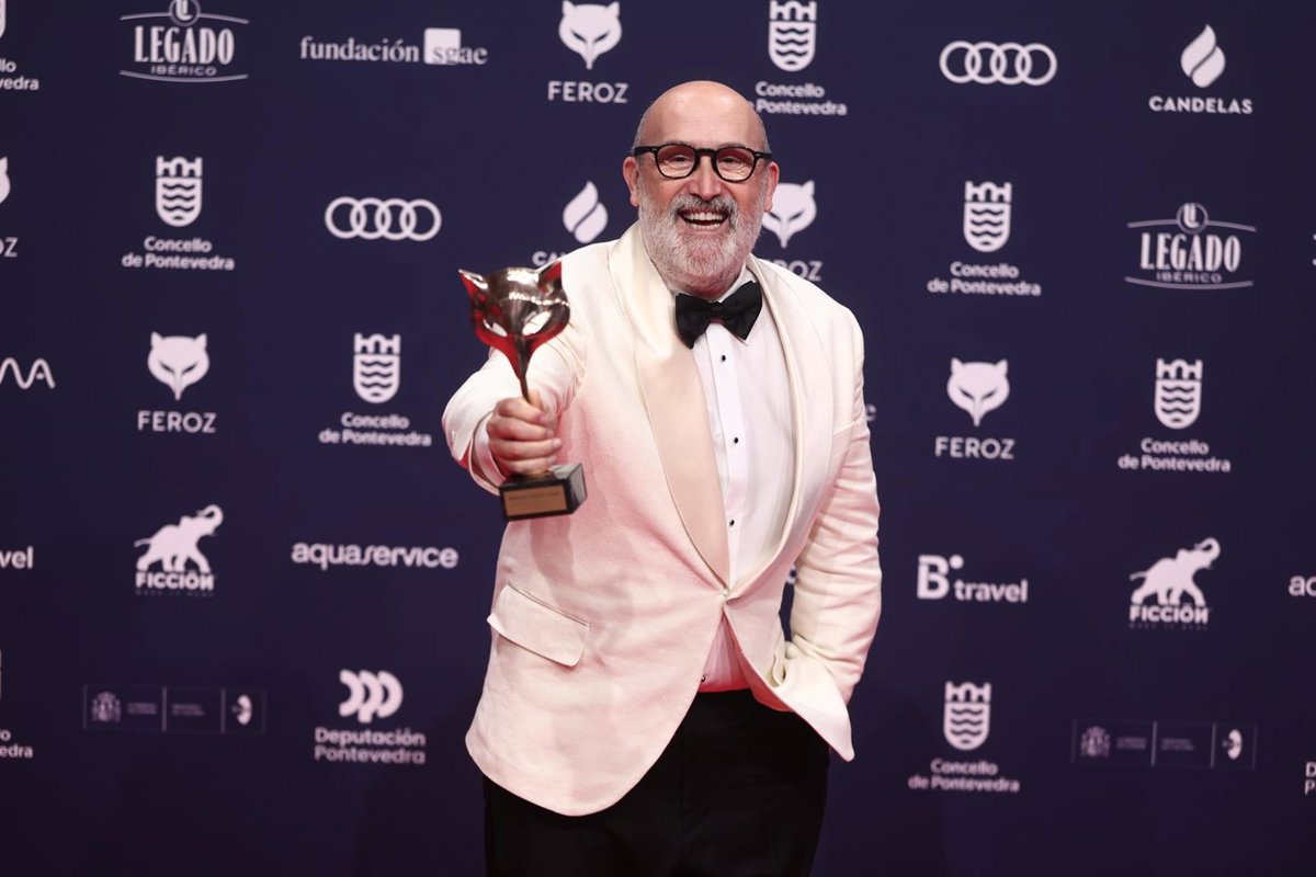 El actor Javier Cámara posa con el Premio a Mejor Actor Protagonista de una Serie por 'Yakarta' en la alfombra roja de los premiados en los Premios Feroz 2026 - Eduardo Parra - Europa Press