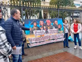 En una rueda de prensa convocada frente al Palacete de Gobierno, la Plataforma ha presentado también un nuevo cuadro con imágenes realizadas con inteligencia artificial en donde se ve al presidente riojano, Gonzalo Capellán, y a todo el equipo de Salud caricaturizados bajo la leyenda 'Piratas de lo público' a modo de satira "por lo que están haciendo con la sanidad", ha indicado Granda.