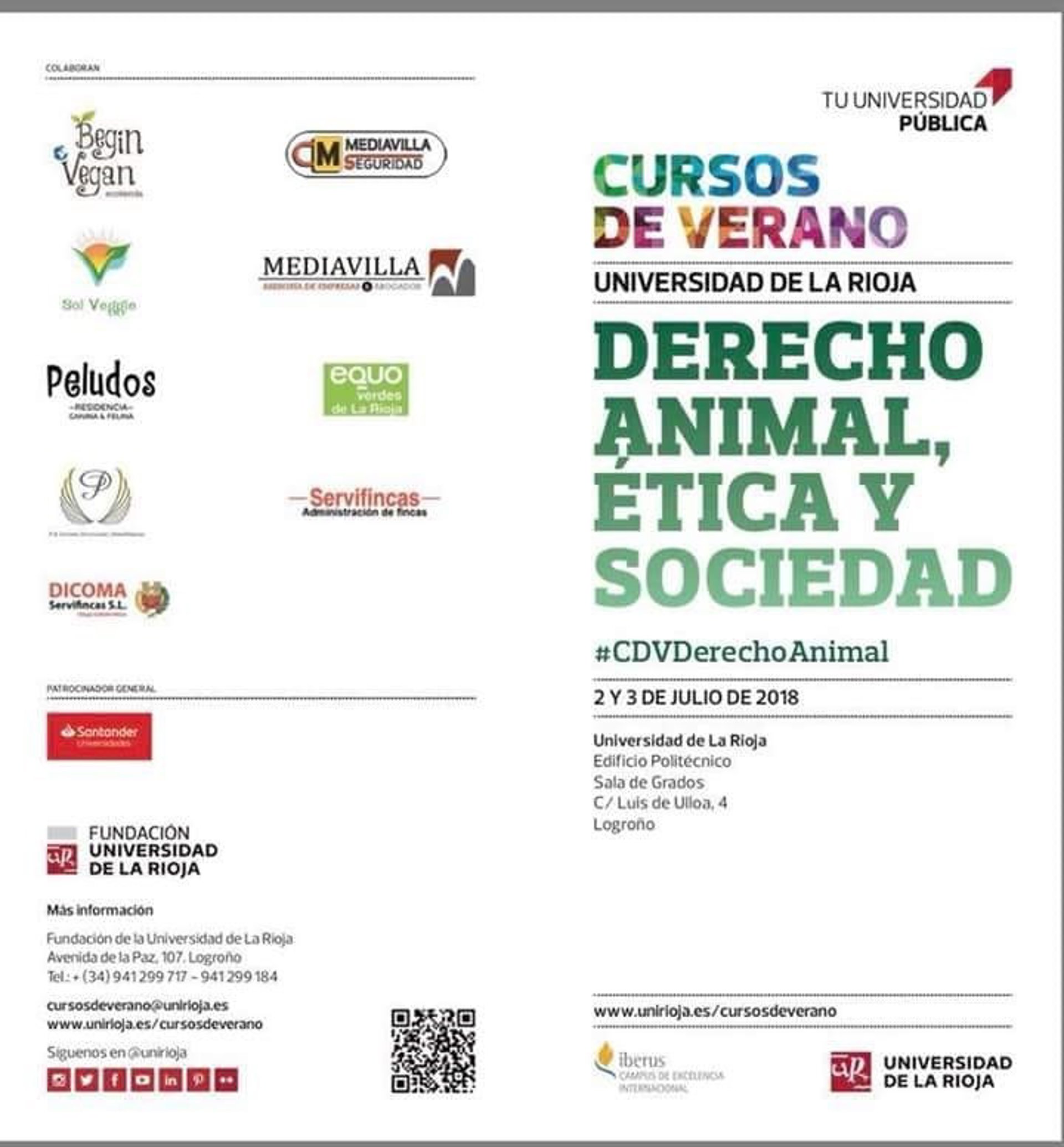 El Curso de Verano 'Derecho animal, ética y sociedad' forma parte del programa de Cursos de Verano UR 2018 que ofrece -del 26 de junio al 24 de noviembre- cine, cursos, literatura, idiomas, campos de trabajo, campamentos urbanos tanto en La Rioja (Arnedo, Bergasa, Calahorra, Cenicero, Enciso, Logroño, Santo Domingo de la Calzada) como en Ginebra (Suiza).