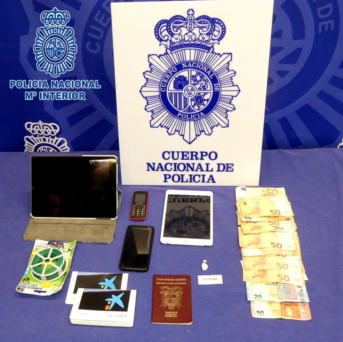 En los registros practicados se han incautado diversas cantidades de droga, listas para su venta al pormenor o "menudeo", material para la preparación de la misma, 1.800 euros en metálico, dispositivos informáticos, teléfonos móviles, un vehículo, así como diversa documentación.