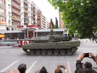 Don Felipe VI y Doña Letizia presidieron el desfile, en el que participaron 2.678 militares y guardias civiles, 48 aviones y helicópteros y un total de 147 vehículos, incluidos carros de combate 'Leopardo'. La marcha se celebraba por segundo año consecutivo fuera de Madrid, al igual que el año pasado, cuando se realizó en Guadalajara.