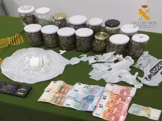 Tras este hecho se realizó un registro voluntario en el interior de la vivienda, en la que se intervinieron 205 euros en efectivo fraccionados en billetes de cincuenta, veinte, diez y cinco euros; siete plantas de marihuana, 23 gramos de speed en roca, 267 gramos de cogollos de marihuana distribuidos en catorce botes de cristal, útiles necesarios para el cultivo ilícito marihuana, además de básculas de precisión y otros utensilios destinados para dosificar la droga.