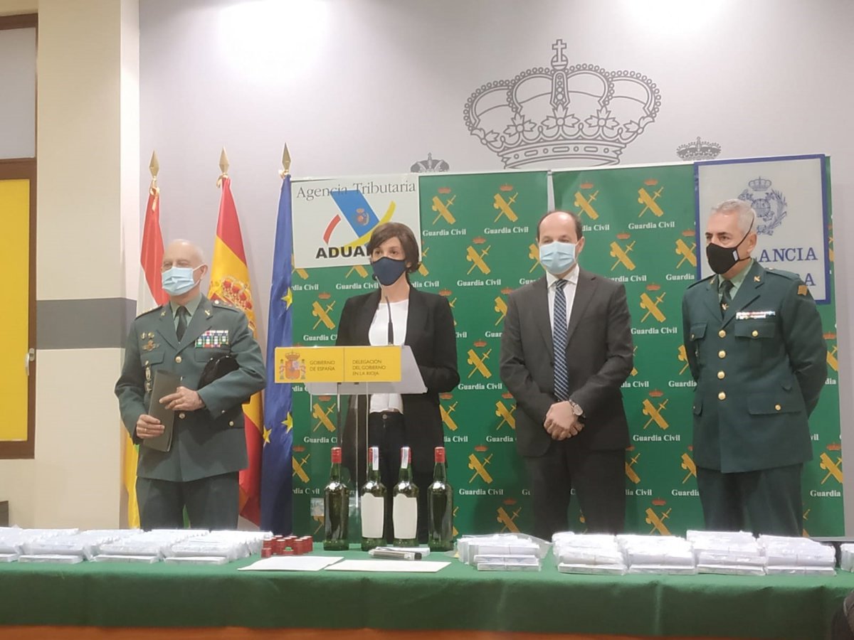 La operación ha sido presentada este jueves por la delegada del Gobierno en La Rioja, María Marrodán, así como por el coronel jefe de la X Zona de la Guardia Civil de La Rioja, José Antonio Cubel, el portavoz de la Guardia Civil en La Rioja, Miguel Ángel Sáez, el delegado especial de la AEAT de La Rioja, Miguel Fernández.