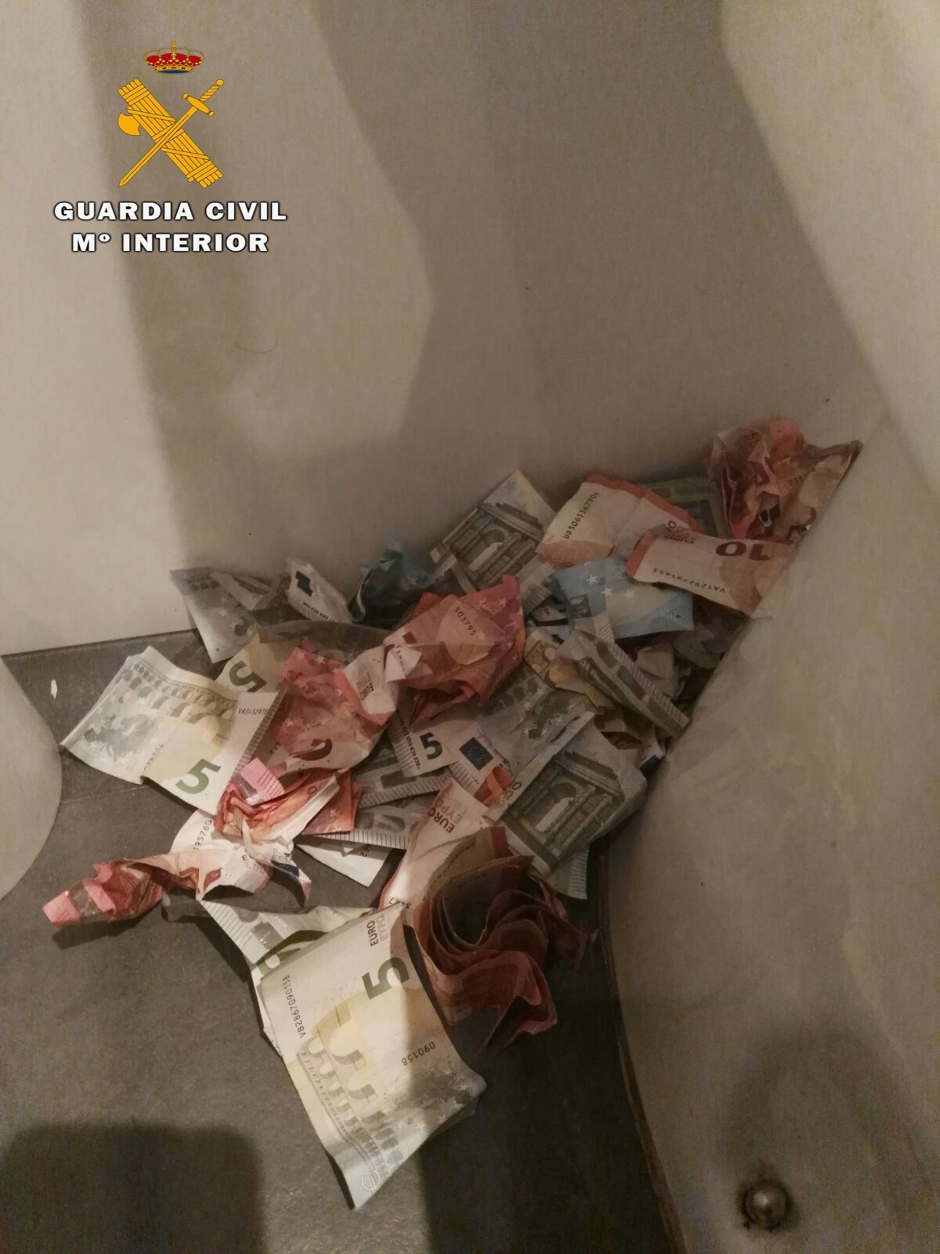 Durante este proceso un ciudadano se acerca a los agentes y les indica que antes de que acudieran al lugar, una de las personas que se encontraban en el interior había entrado en los servicios de otro bar aledaño, abandonándolo a los pocos segundos de manera precipitada dejando el dinero que buscaban detrás del inodoro.