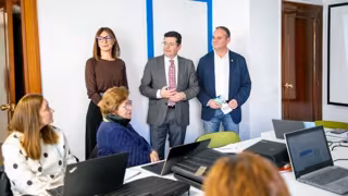 "La Rioja ya es más digital" ha aseverado Alfonso Domínguez durante su visita a la sede del programa en Logroño -situada en Gran Vía I, 67, entreplanta 2-, en la que ha podido saludar a algunos de los alumnos participantes en el curso de 'Iniciación a la Informática con PC'. El consejero ha recordado que el objetivo del proyecto, que se extenderá hasta junio de 2026, es "conseguir alrededor de 7.000 formaciones y que más de 4.720 riojanos puedan capacitarse en el uso seguro de las tecnologías de la sociedad de la información".