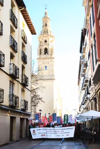 La marcha ha ido encabezada por una pancarta en la que se podía leer el lema 'Trabajo digno para los y las docentes interinos. ¡Basta de precariedad' Por la calidad de la educación riojana', firmada por los sindicatos UGT, CCOO, CSIF, STAR y STE Rioja.
