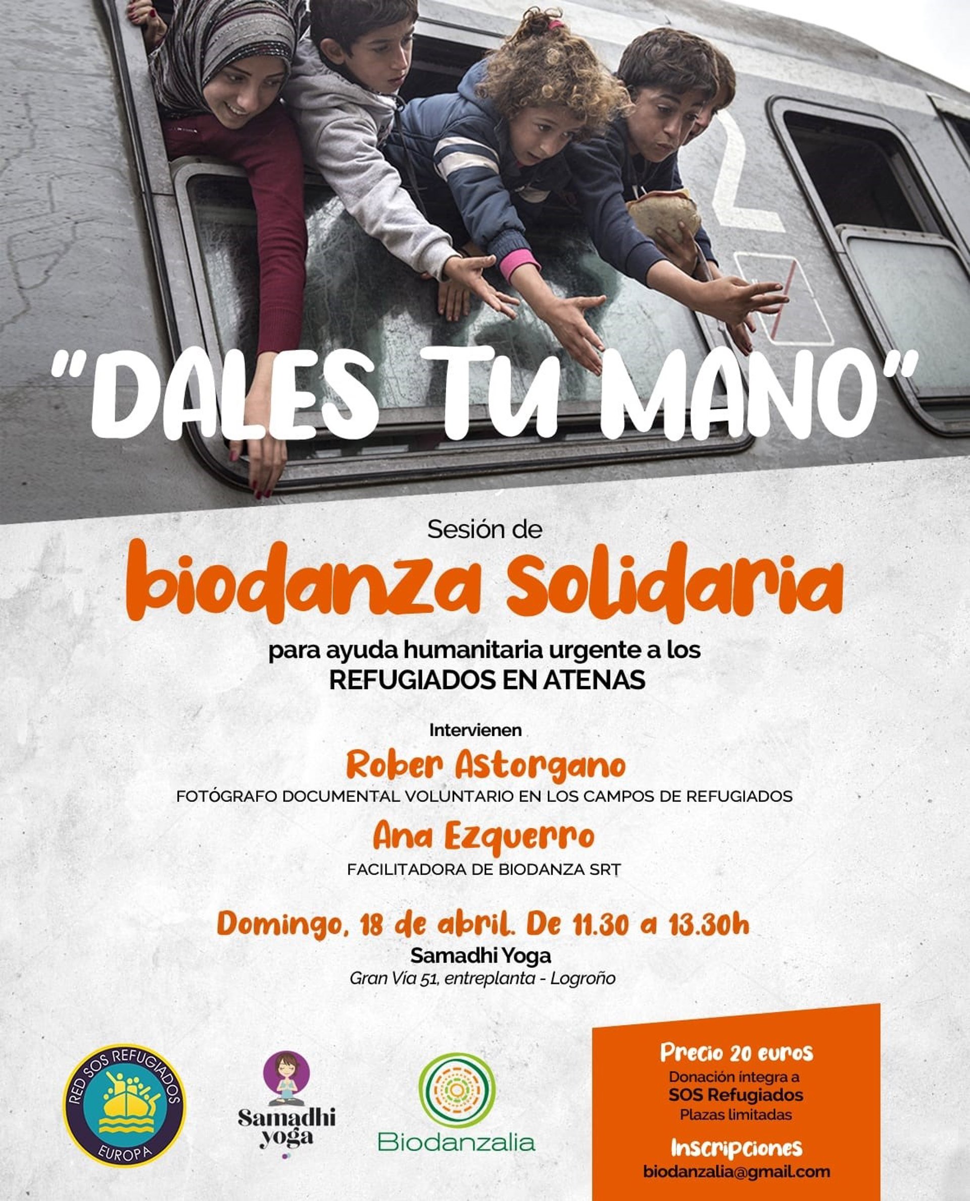 Este domingo tendrá lugar una sesión de biodanza solidaria de la mano de Ana Ezquerro. Los ingresos irán íntegramente destinados a la compra y reparto de alimentos para las personas refugiadas, a través de Red SOS Refugiados (Asociación de Voluntarios que desde 2015 reparte comida y material de primera necesidad en las calles, centros de detención y campos colindantes de Atenas).