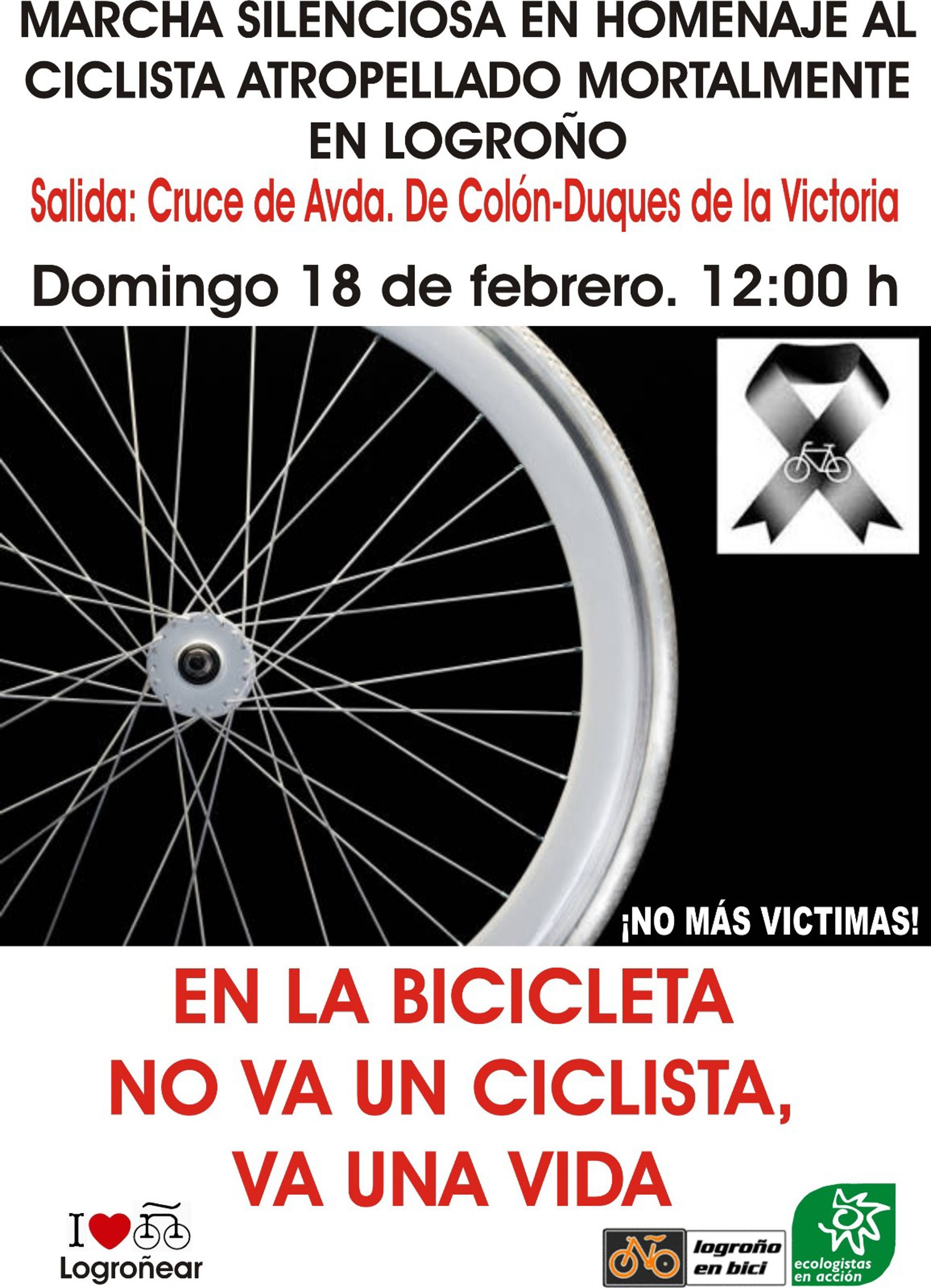 Por ello reclaman pedalear en silencio el día 18 para reclamar mayor respeto y protección para las personas que utilizamos la bicicleta, como transporte o como deporte, y "para exigir acabar con la lacra de la siniestralidad vial. Otras ciudades similares a Logroño lo han conseguido en su urbanismo, pero aquí no llevamos ese camino".