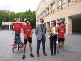 La alcaldesa de Logroño, Cuca Gamarra, ha presentado esta mañana en la Plaza del Ayuntamiento una "novedosa campaña de concienciación vial impulsada por el Consistorio logroñés para fomentar la convivencia pacífica entre ciclistas y conductores".