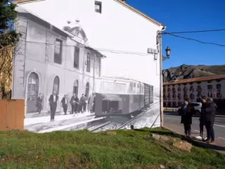 Así, el artista Pablo Zabala firma el mural que ya se puede disfrutar si se pasea por una de las principales vías de Ezcaray, el cruce entre la carretera LR-111 y la LR-145. Coordinado por la empresa Mural Graffiti, la obra recupera la imagen de una antigua fotografía del conocido como tren de Bobadilla, una línea férrea que en 1916 comenzó a unir Haro con Ezcaray, recorriendo hasta 34 kilómetros, pasando por localidades como Casalarreina, Castañares, Bañares, Santo Domingo de la Calzada, Santurde y Ojacastro hasta llegar a la estación de ferrocarril ezcarayense.
