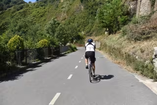 Archivo - Ciclista circulando por una carretera riojana - GOBIERNO RIOJANO - Archivo