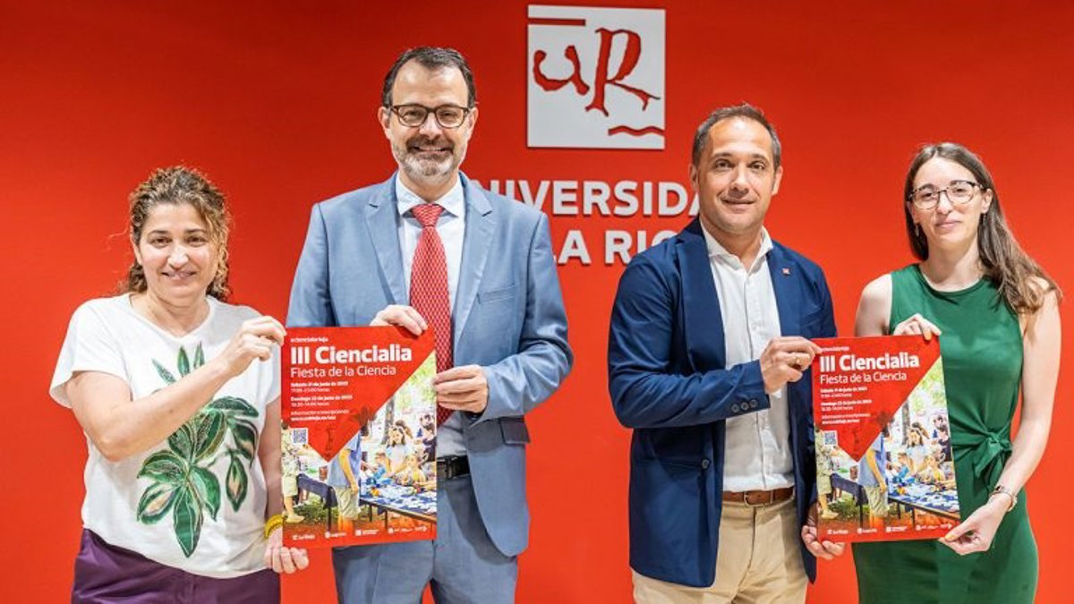 De izquierda a derecha, Rosario López, el viceconsejero Miguel Ángel Fernández, el vicerrector Eduardo Fonseca y Alicia Muro en la presentación de Ciencialia - UR