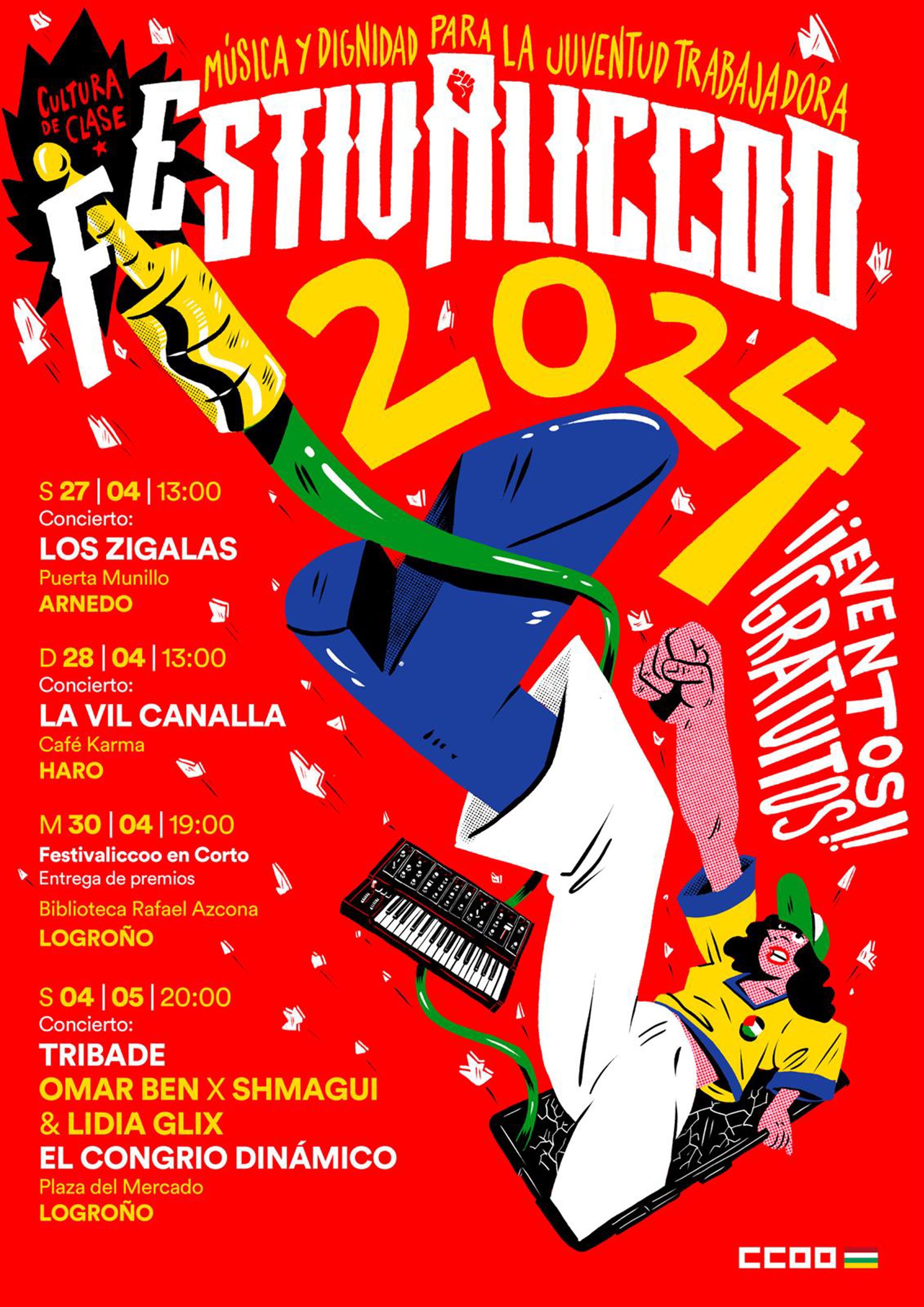 'Música y dignidad para la juventud trabajadora'. Con este lema se desarrollará una nueva edición de 'FestivaliCCOO', organizado por el sindicato CCOO, coincidiendo con el 1 de mayo, Día Internacional del Trabajador. En esta ocasión los festivales se desarrollarán en Haro, Arnedo y Logroño y, como novedad, celebrará un concurso de cortos.