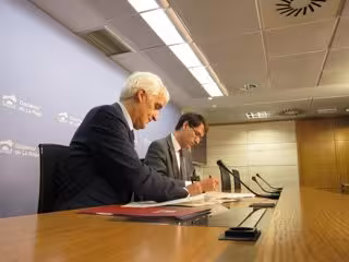 El consejero de Educación, Cultura y Turismo, Gonzalo Capellán, ha firmado esta mañana con el rector de la Universidad de La Rioja, José Arnáez, dos convenios para la financiación de varios programas de movilidad internacional para estudiantes y las matrículas de los alumnos con discapacidad a los que el Gobierno de La Rioja aportará 159.362 euros.