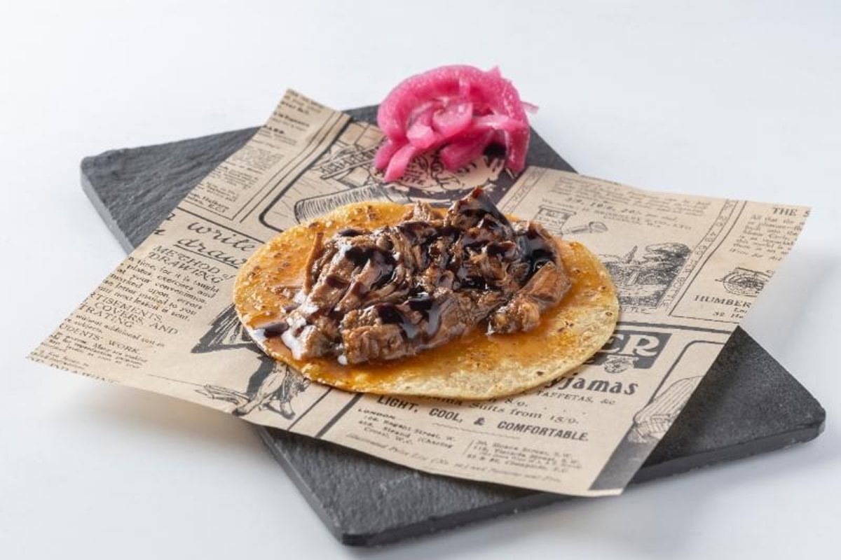 Tasty Fajitas (C/ San Juan 5, bajo- Logroño). Taco Riojano "Tacordero". Taco de cordero riojano, salsa de cordero, mantequilla, tortita de maíz y vino tinto DOC Rioja.