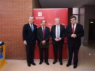 La jornada debate, que tiene lugar en la sala de grados del edificio Quintiliano, ha contado con la presencia del consejero de Presidencia, Emilio del Río, que ha destacado que "la Comisión Europea nos defiende mejor que el Gobierno socialista" en temas relacionados como "las vacaciones fiscales o en la defensa del Rioja", por lo que "la Unión Europea es una obligación y no una opción".
