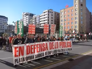 La protesta, como es habitual, ha comenzado a mediodía, cuando varias decenas de personas se han concentrado ante la Delegación del Gobierno, con una pancarta en la que se leía 'En defensa de lo público', firmado por la Plataforma sindical de empleados públicos -integrada por UGT, CCOO, CSIF, STAR, USO, STE, USAE y Cemsatse-.