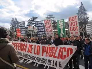 La Plataforma de Empleados Públicos de La Rioja ha realizado un particular viacrucis como forma de protesta contra los recortes ya que "se encuentran indignados no sólo por la manipulación de manos de unos dirigentes que sólo atacan a los más desfavorecidos, sino también por la pérdida de derechos inherentes a nuestra sociedad".