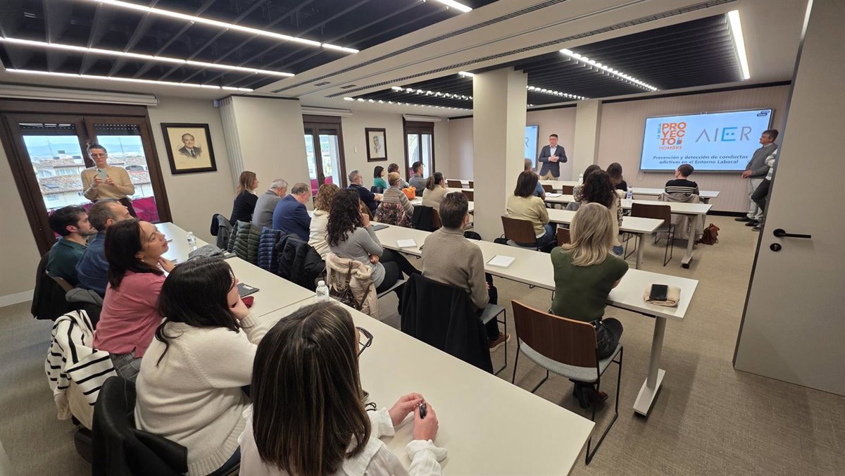 La Federación de Empresas de La Rioja (FER) y la Asociación de Instaladores de La Rioja (AIER), en colaboración con Proyecto Hombre La Rioja, han celebrado este viernes una jornada centrada en la prevención de conductas adictivas en el entorno laboral, dirigida a mandos intermedios y responsables de equipos de empresas asociadas. Han participado más de una treintena de representantes empresariales en la sesión. AIER cuenta con unas 140 empresas y unos 500 trabajadores.