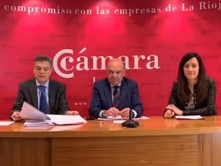 El presidente de la Cámara de Comercio, Jaime García-Calzada, el director general la Cámara, Florencio Nicolás, y la responsable de Estudios, Cristina Navarro, analizan la Encuesta de Coyuntura Empresarial - CÁMARA RIOJANA