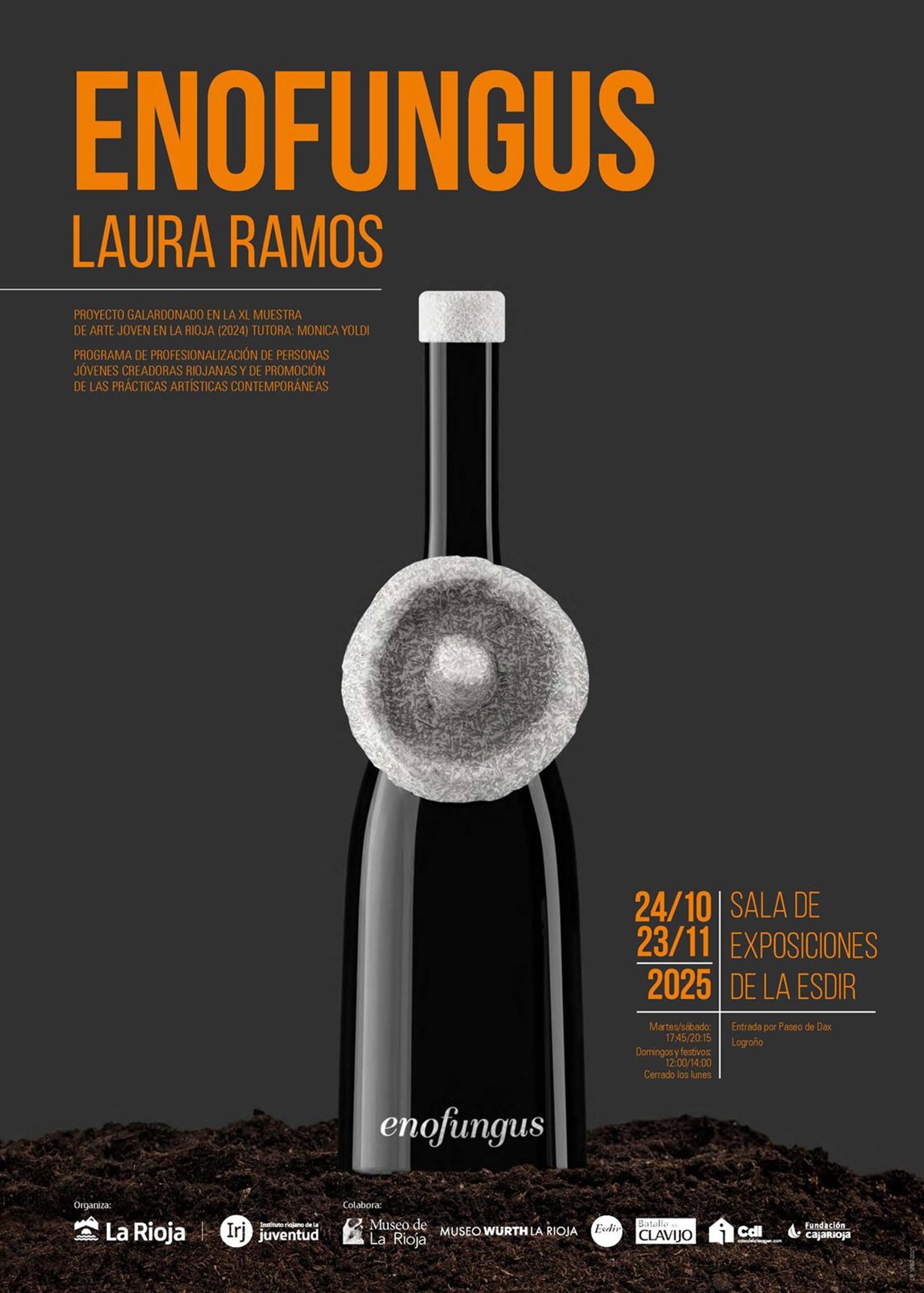 El Instituto Riojano de la Juventud (IRJ), dependiente de la Consejería de Cultura, Turismo, Deporte y Juventud, ha inaugurado este jueves, 23 de octubre, en la Escuela Superior de Diseño de La Rioja (Esdir) la exposición 'Enofungus', de la diseñadora riojana Laura Ramos, galardonada en la XL Muestra de Arte Joven en La Rioja. En el acto han participado el director del IRJ, Juan Diego Alcaide; la autora del proyecto, Laura Ramos; y la directora de la Esdir, Mónica Yoldi, tutora de este proceso creativo y formativo.